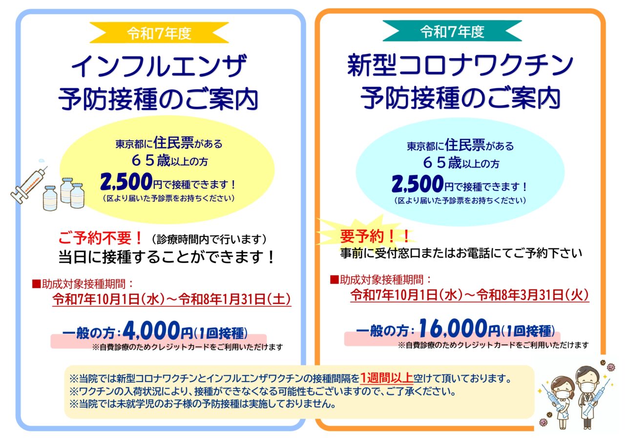 令和7年度 インフルエンザ・コロナワクチン 予防接種のご案内
